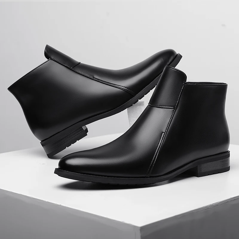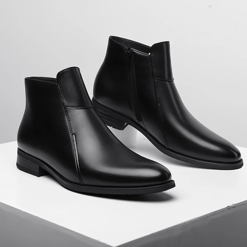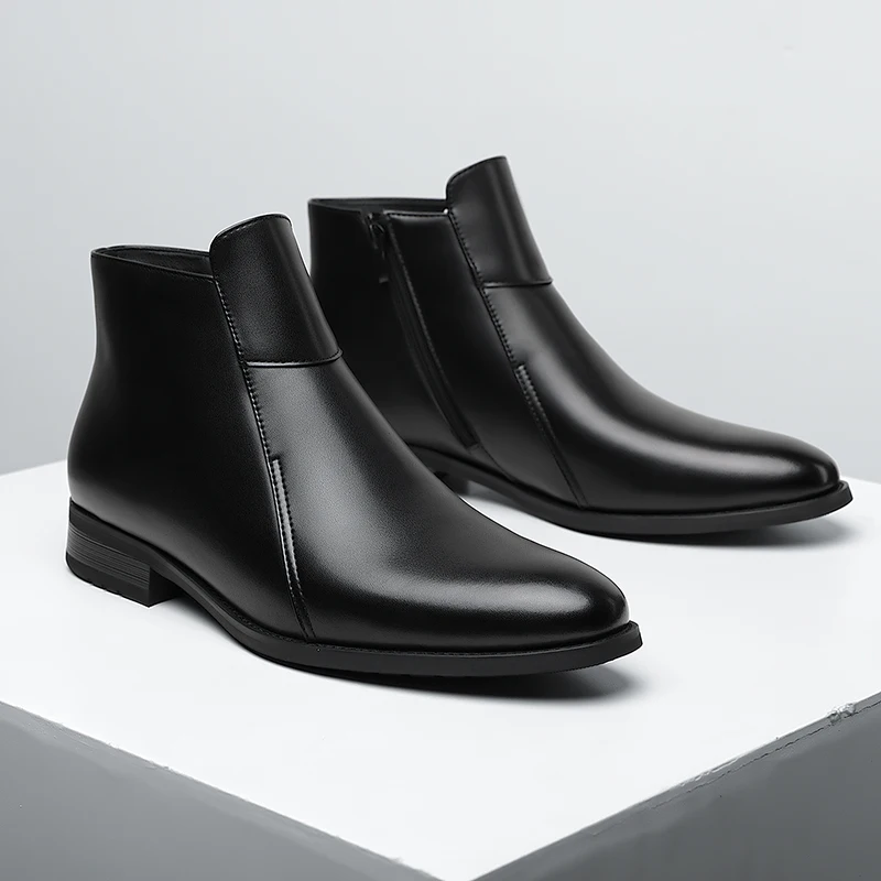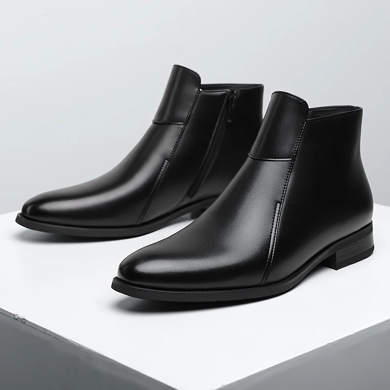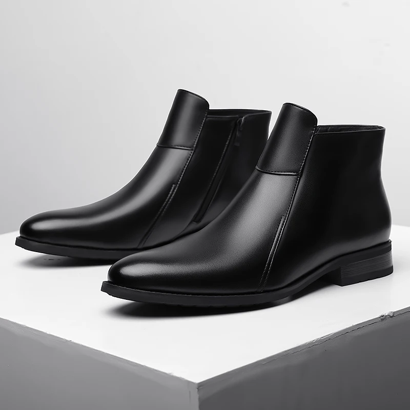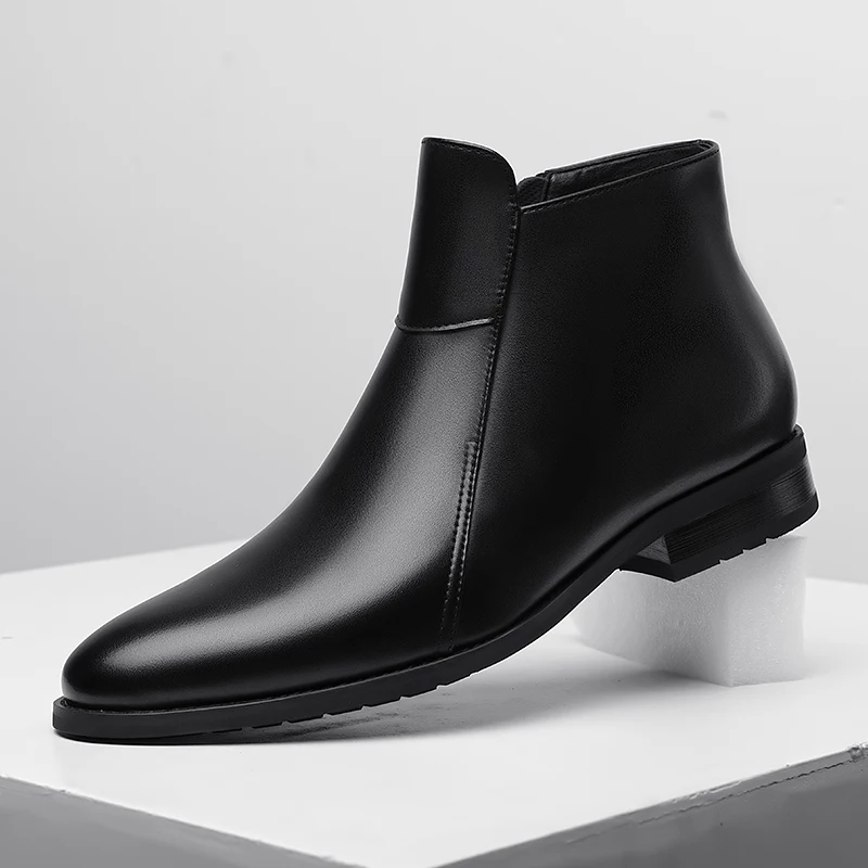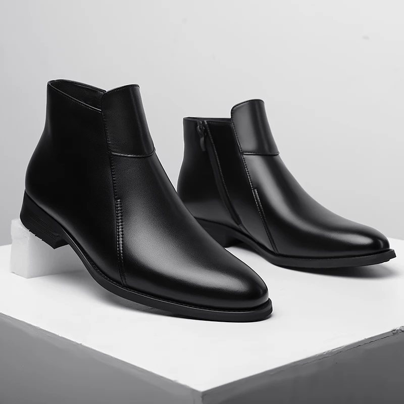 Genuine Leather Men's Chelsea Boots British Style Men Ankle Boots High Top Zippered Man Shoes Leisure Walk Business Shoes Botas